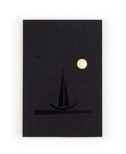 7,5 x 11 x 0,4 cm 300g Gmund Color Karton schwarz, kaschiert auf 3mm Leichtstoffplatte, ausgestattet mit 2 Wandpuffer auf der Rückseite, geprägt Handgefertigt